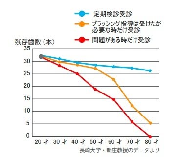 しかし、定期的なメインテナンスによって歯を維持することができることがこのデータでわかると思います。