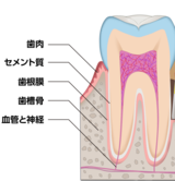 本来、歯の見えている部分は人体で一番硬いエナメル質に、それより下は歯肉で覆われており、しみることはありません。